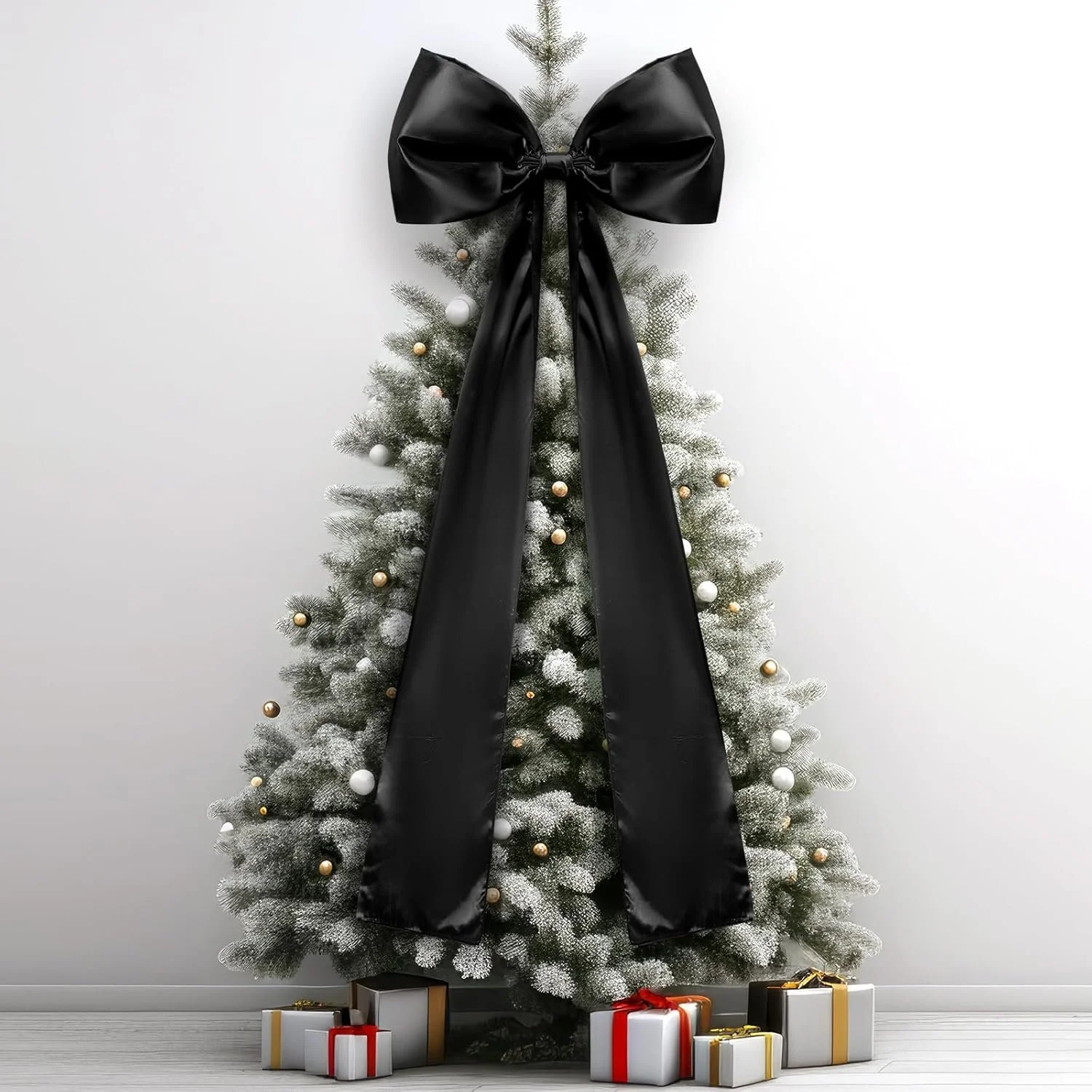 This oversized black satin bow makes a dramatic and moody statement on any Christmas tree. The rich satin finish brings depth and elegance, and the extra large size adds a bold, sophisticated touch that feels high end. It also works beautifully on wreaths, stair rails, large wall decor, or holiday party displays. If you want a stylish alternative to traditional tree toppers, this bow is the perfect centerpiece for a modern, moody Christmas look.